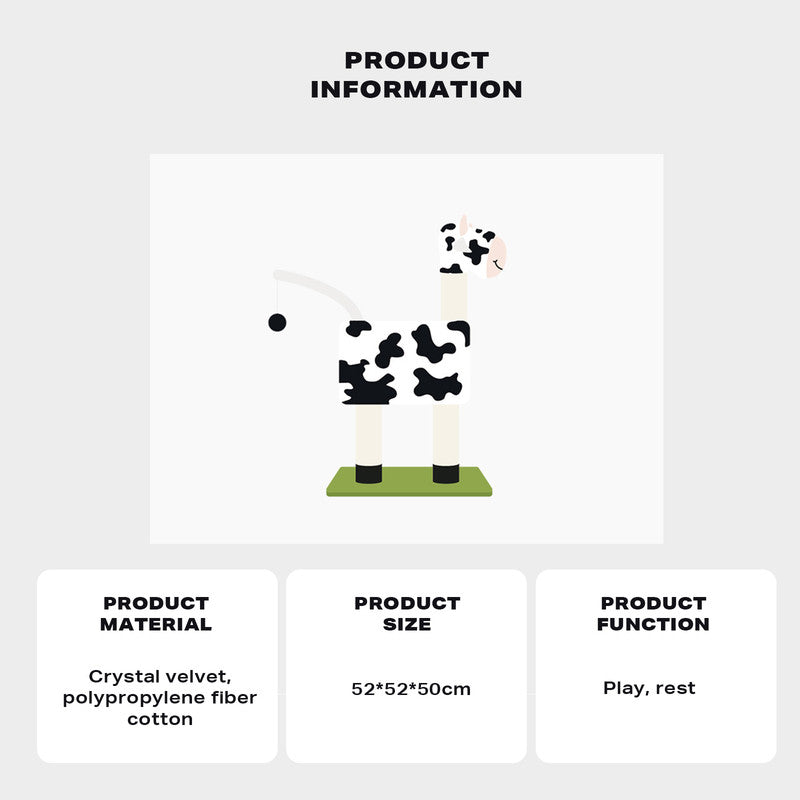 Cow Cat Tree Scratching Post Scratcher Tower Condo House Hanging Toys 86cm Condition: Brand New