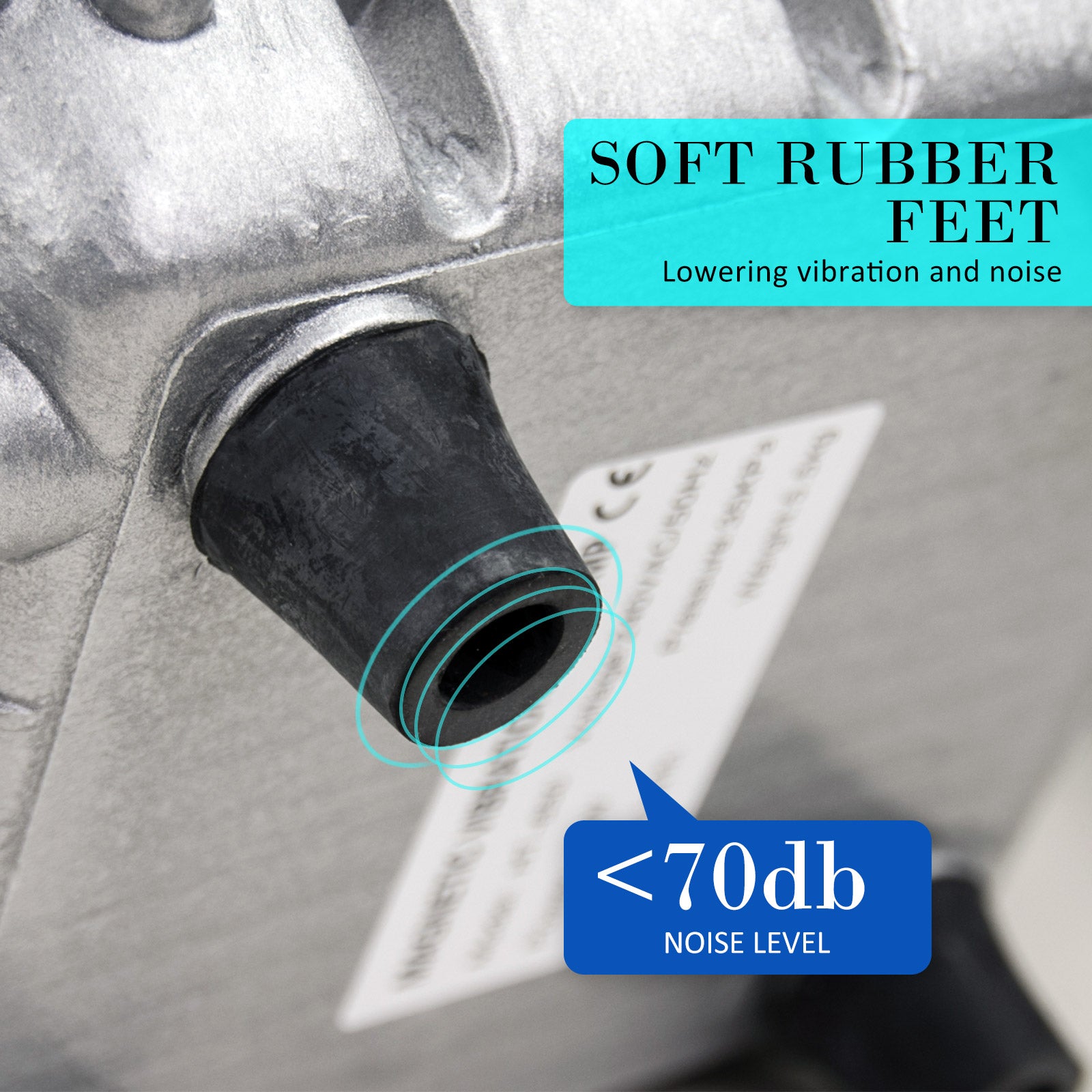 The 12 air outlets allow you to create a more even airflow and maximise the effectiveness in spreading oxygen. The compressor of this air pump is very quiet and the new design added with rubber feet keeps the vibration level to the minimum. The simple, yet efficient design also saves you precious space and also increases the service life.