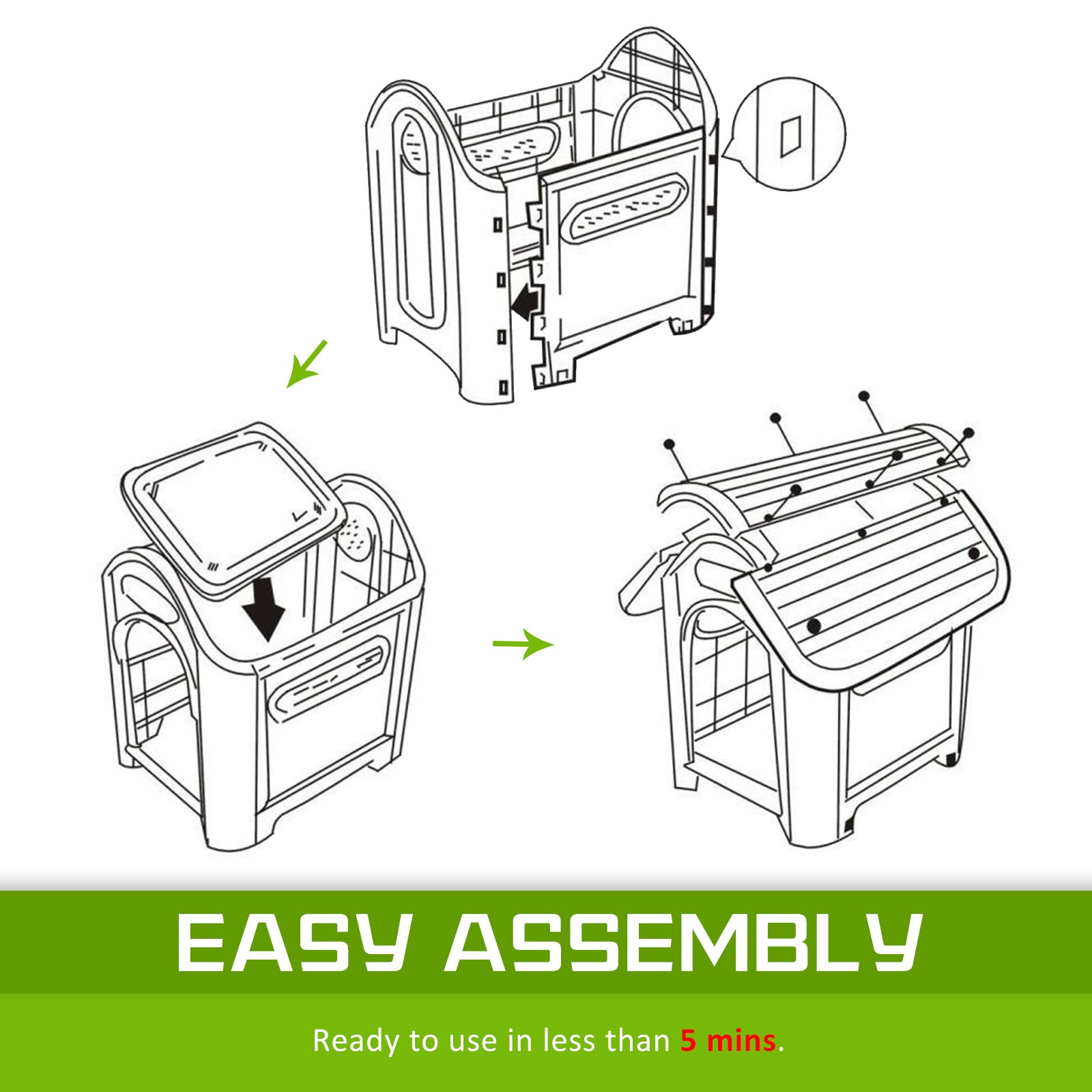 Your little pet deserves our PawMate plastic dog kennel which is modern yet classic and is architecturally designed with all the details. Pet Dog Kennel is the just the perfect home for your furry buddy to sleep, rest or relax. This kennel is raised on small legs , and this stop the damp and cold from penetrating the kennel floor. Designed for use indoors or outdoors, this durable plastic dog kennel which is weatherproof and UV stabilized. Vents at the front, side, rear and bottom help to ensure that your pet is kept well ventilated with fresh supplies of clean air. Simple and easy to assemble, get one for your little buddy now!