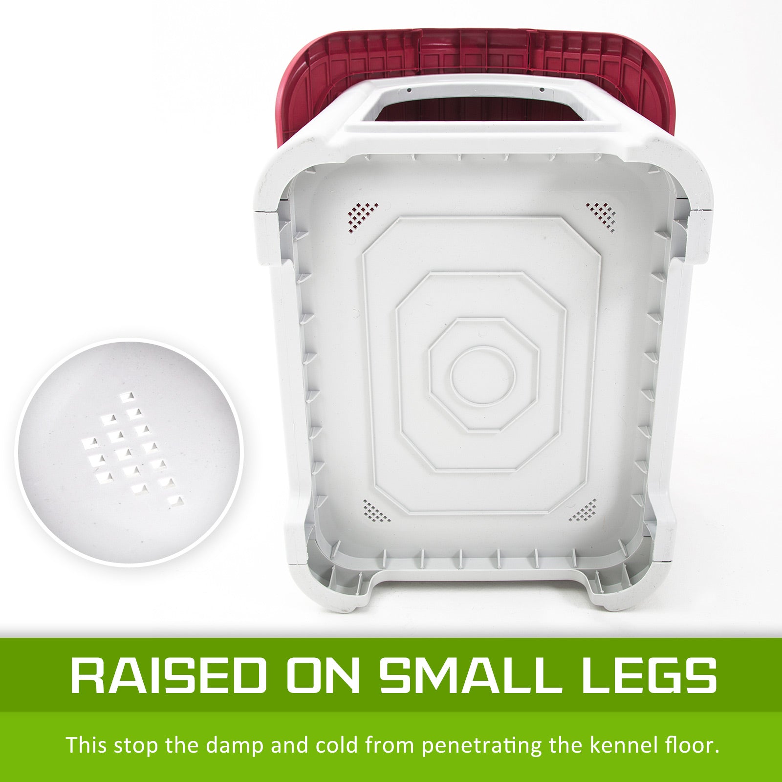- Raised on small legs - This stop the damp and cold from penetrating the kennel floor